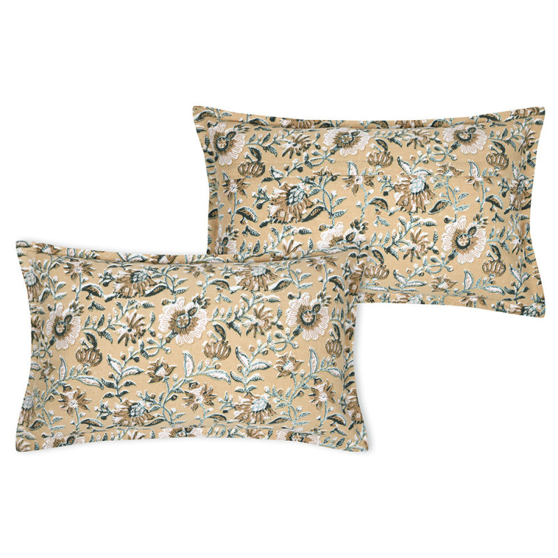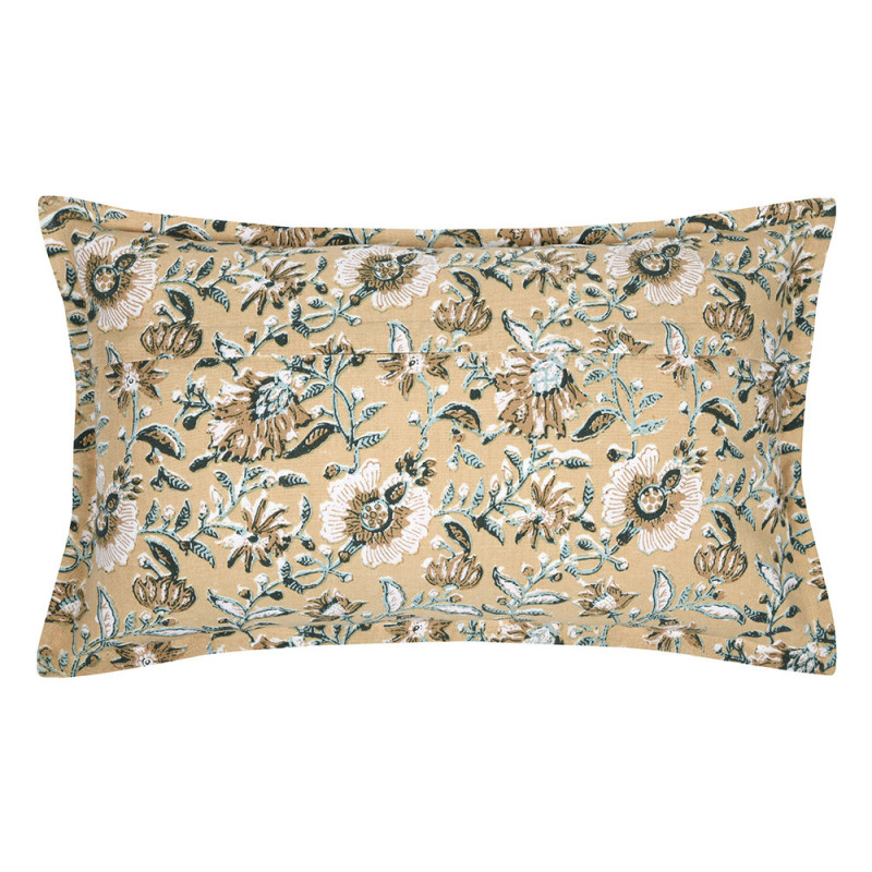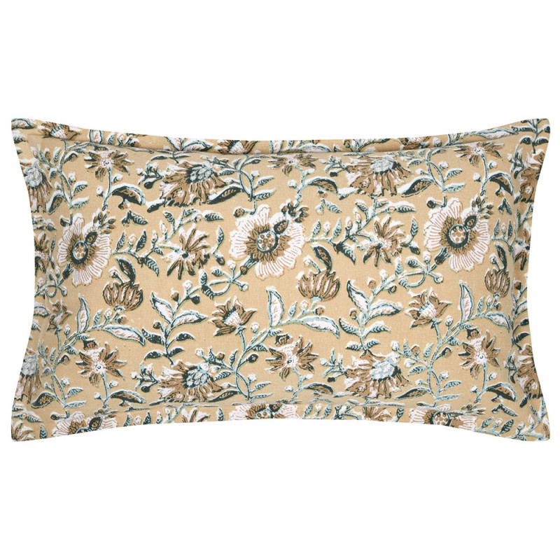 Coussin imprimé floral zippé jaune moutarde 30x50 cm