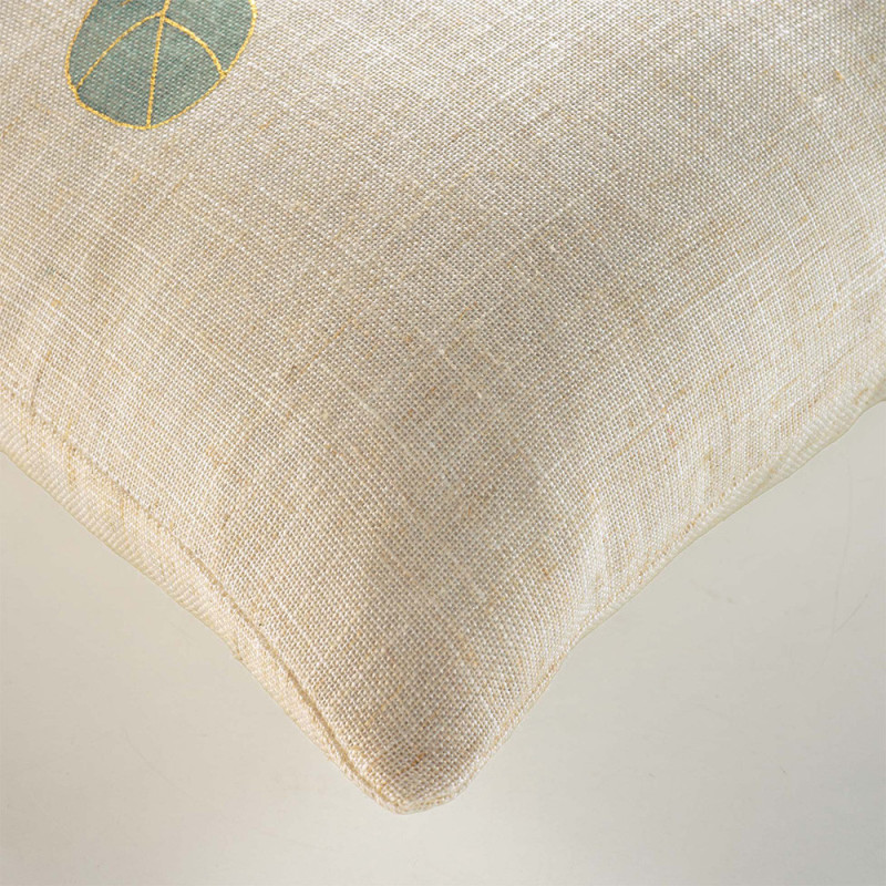 Coussin déhoussable imprimé eucalyptus et métallisé beige...