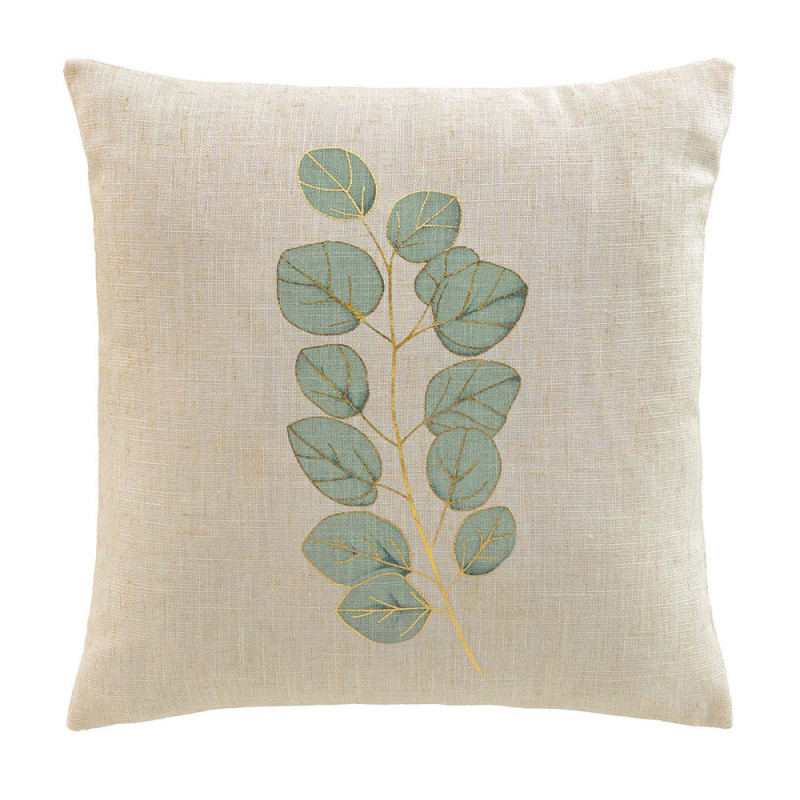 Coussin déhoussable imprimé eucalyptus et métallisé beige 45x45 cm