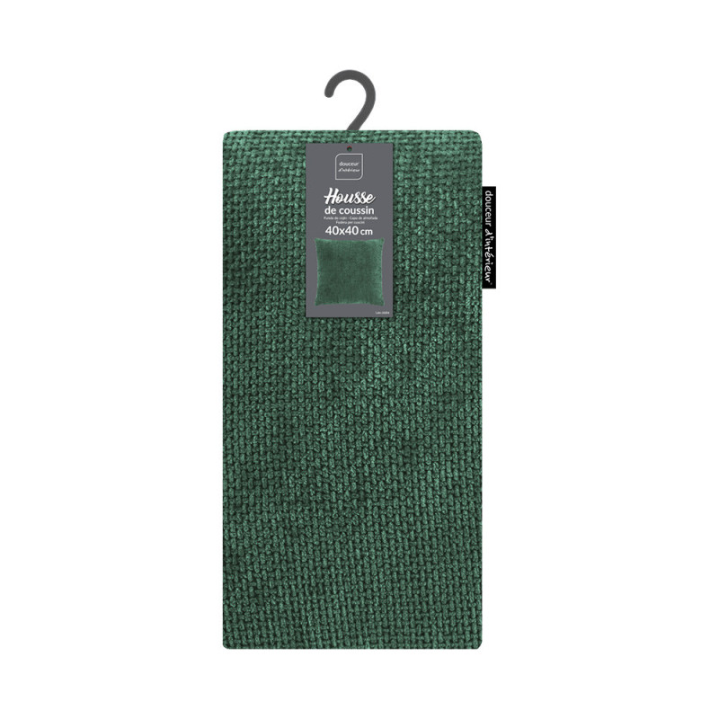 Coussin velours chenille vert émeraude 40x40 cm
