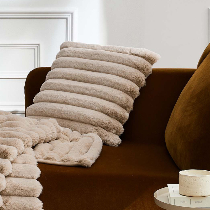 Nouveauté tendance déco du moment : le Coussin imitation fourrure sable 45x45 cm, un