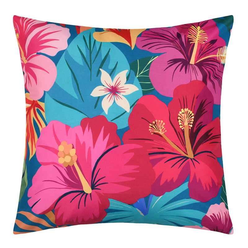 Coussin toile extérieure zippée imprimé tropical bissap multicolore – 45x45 cm