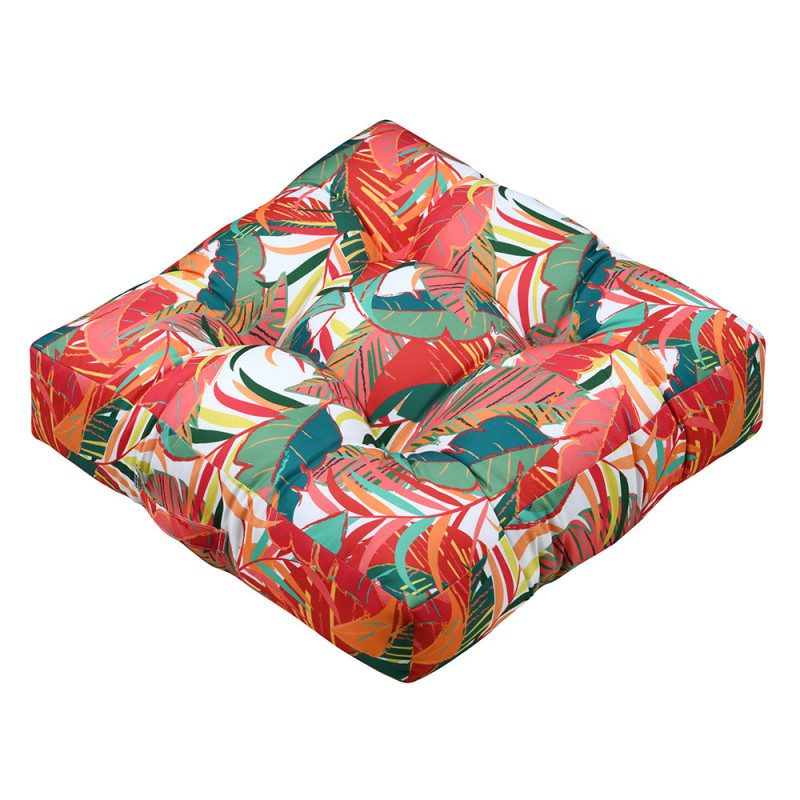 Coussin de sol toile extérieure déperlante imprimé tropical multicolore 60x60x12 cm