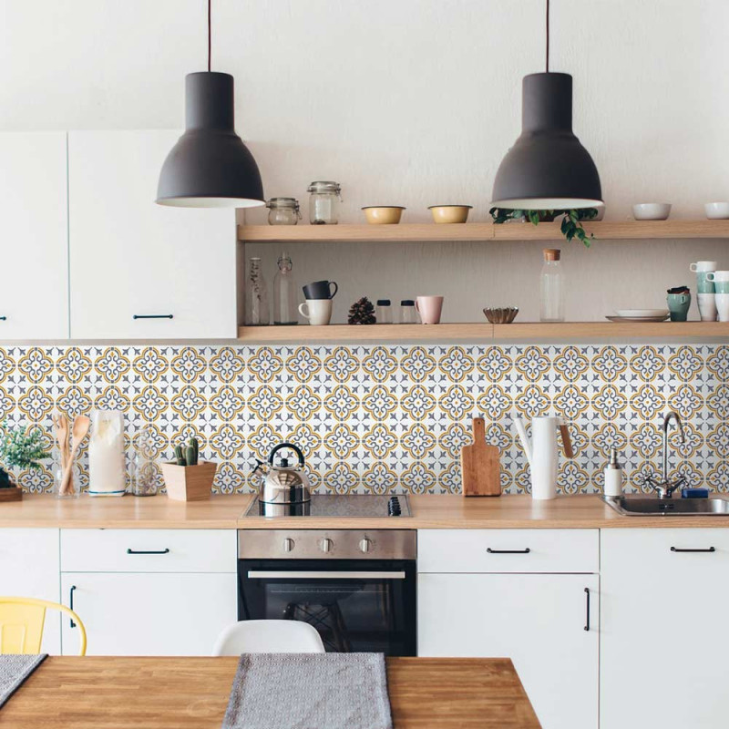 Transformez instantanément votre cuisine ou salle de bain avec notre pack de 6 crédences PVC adhésives imitation carreaux ciment jaune et gris, mesurant 15 x 15 cm chacun. Offrant une alternative pratique et esthétique aux carreaux traditionnels, ces crédences sont faciles à installer grâce à leur adhésif intégré. Leur design réaliste apporte une touche de modernité et d'élégance à votre espace, tout en protégeant vos murs des éclaboussures et des salissures. Rafraîchissez votre décoration intérieure en un clin d'œil avec ce pack de crédences PVC !