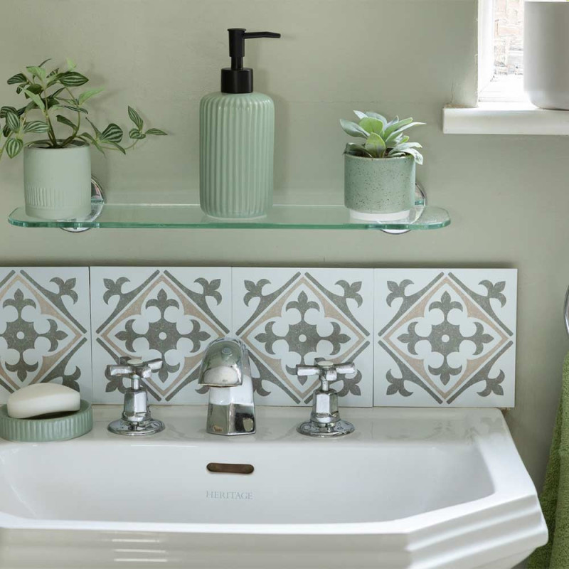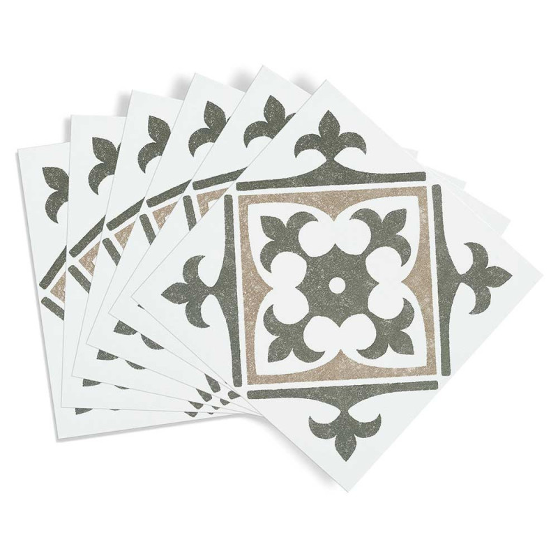 Pack de 6 crédences PVC adhésives imitation carreaux ciment Nadia vert 15 x 15 cm