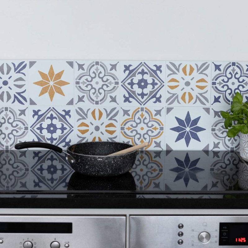 Transformez instantanément votre cuisine ou salle de bain avec notre pack de 6 crédences PVC adhésives imitation carreaux ciment en duo...