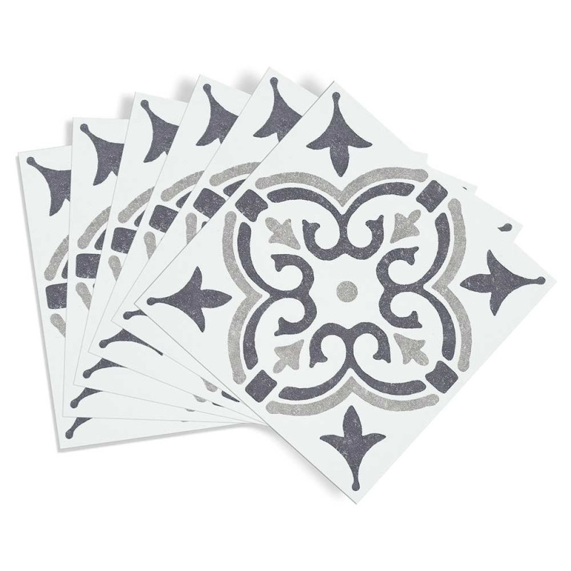 Pack de 6 crédences PVC adhésives imitation carreaux ciment Jamila duo de gris 15 x 15 cm
