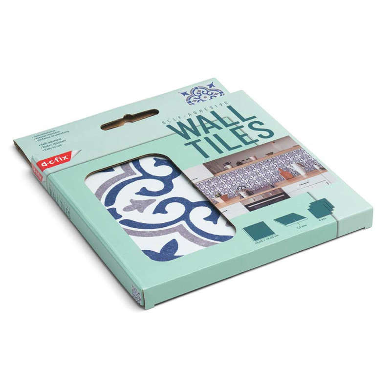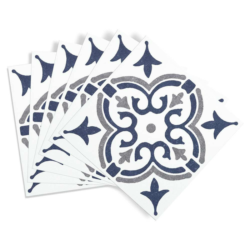 Pack de 6 crédences PVC adhésives imitation carreaux ciment Jamila bleu marine 15 x 15 cm