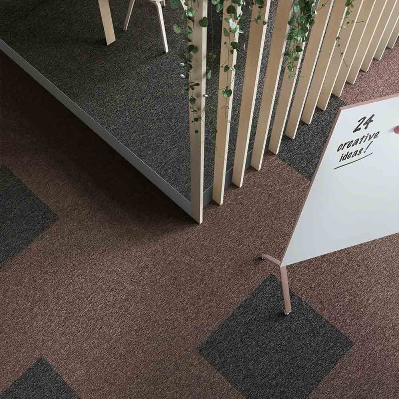 Dalle de moquette bouclée couleur rouille et de dimension 50 x 50 cm. Cette moquette très douce a été conçue pour résister à un grand passage. Elle sera idéale pour un usage professionnel, ou des pièces de grand passage. Sa particularité est quelle est autoportante : elle se pose très rapidement et très facilement. Elle ne nécessite pas de colle et a une très bonne isolation phonique. Elle vous permet de refaire votre pièce un peu de temps. Très épaisse, elle apportera un trés bon confort à la marche. Elle se décline en 27 couleurs, incluant des couleurs neutres chic, des nuances calmes inspirées de la nature, ainsi que quelques teintes funky et audacieuses. Elle existe aussi en dimension 100 x 100 cm.