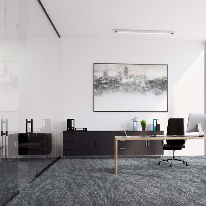 Dalle de moquette bouclée chinée plombante couleur gris et bleu et de dimension 50 x 50 cm. Sa particularité est quelle est autoportante : elle se pose très rapidement et très facilement. Elle ne nécessite pas de colle et a une très bonne isolation phonique. Elle vous permet de refaire votre pièce un peu de temps. Très épaisse, elle apportera un trés bon confort à la marche.