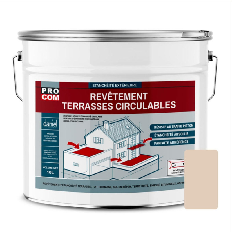 La peinture étanchéité terrasse circulable PROCOM beige sable 10L est une
