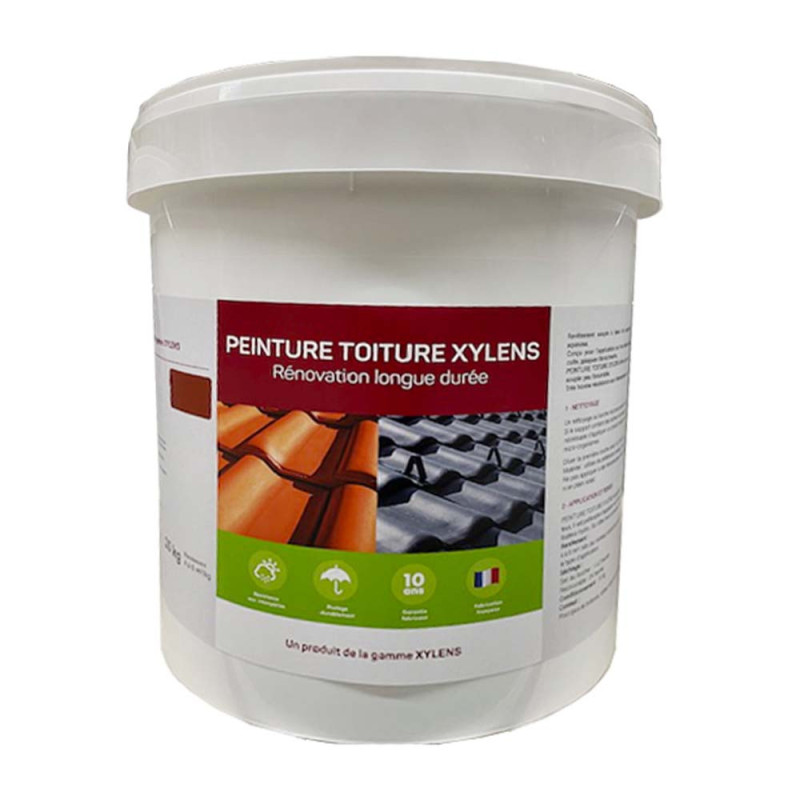 Peinture pour toiture XYLENS brun 15kg, idéale pour redonner vie à votre toit tout en le protégeant durablement. Ce revêtement acrylique en phase aqueuse, à finition mat-velouté, est spécialement formulé pour s’appliquer sur une large gamme de supports : tuiles béton, tuiles en terre cuite, plaques en fibrociment, ardoises, zinc ou tôles. Sa texture microporeuse permet au support de respirer, limitant ainsi les risques de cloques ou de décollement, tout en étant imperméable et hautement résistante aux intempéries. Grâce à son fort pouvoir garnissant et à son film souple, elle suit les mouvements du support sans craqueler, garantissant une excellente tenue dans le temps. Le coloris brun apporte une touche naturelle et chaleureuse à votre toiture pour une rénovation à la fois esthétique et performante.