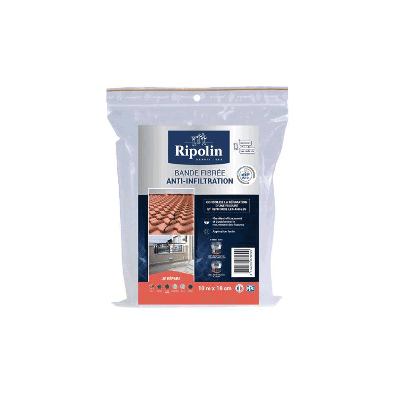 Bande fibrée Ripolin anti-infiltration toiture ou terrasse et balcon 10m