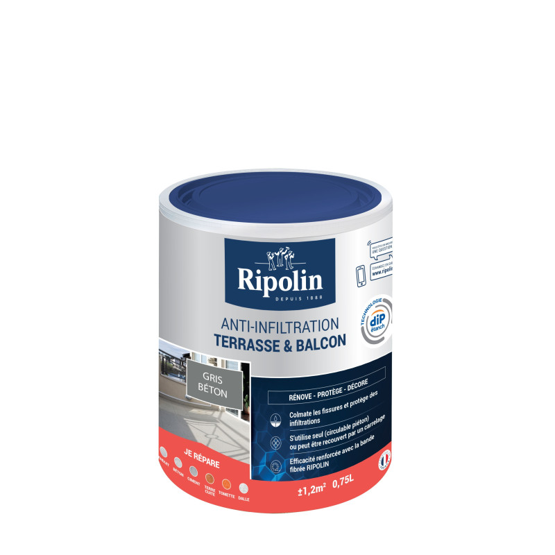 Peinture Ripolin anti infiltration terrasse et balcon gris béton 0,75 L