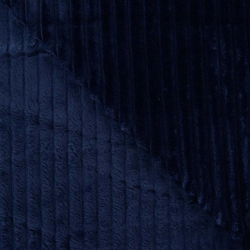 Tissu fausse fourrure côtelé bleu marine 145cm