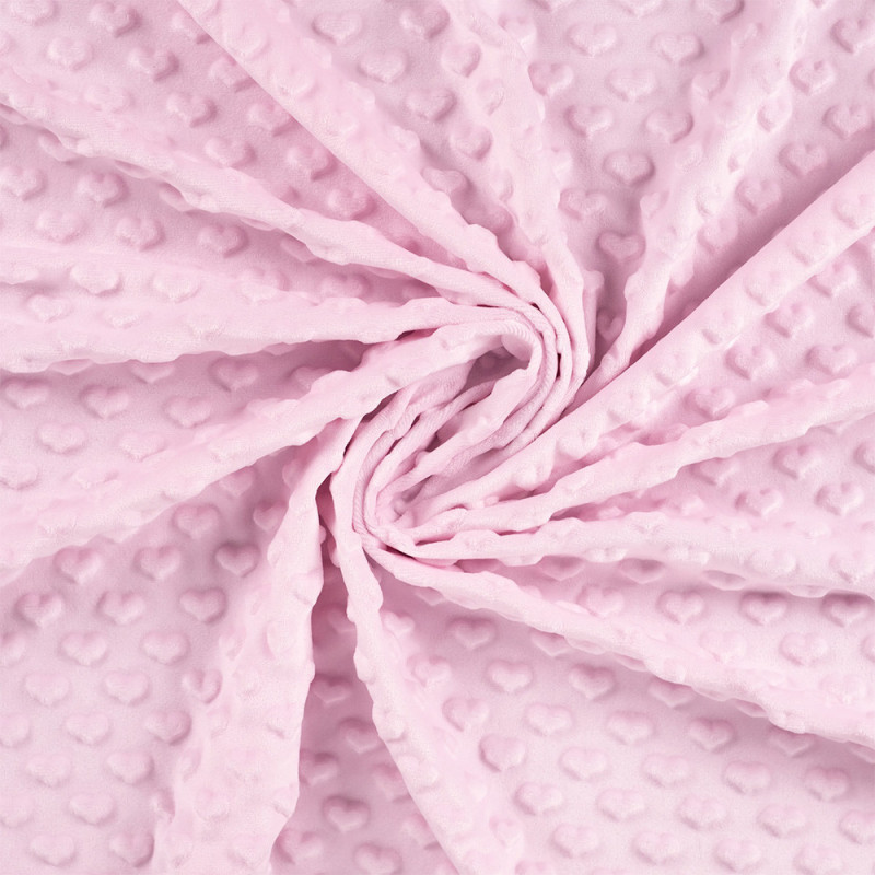 Tissu fausse fourrure cœur en relief rose 150cm
