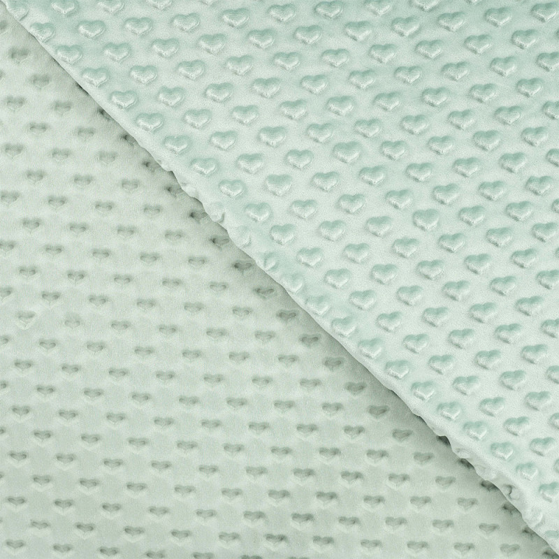 Tissu fausse fourrure cœur en relief vert sauge 150cm