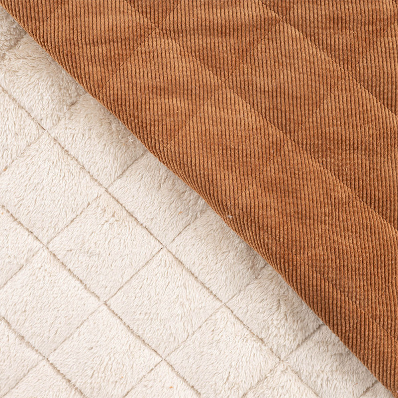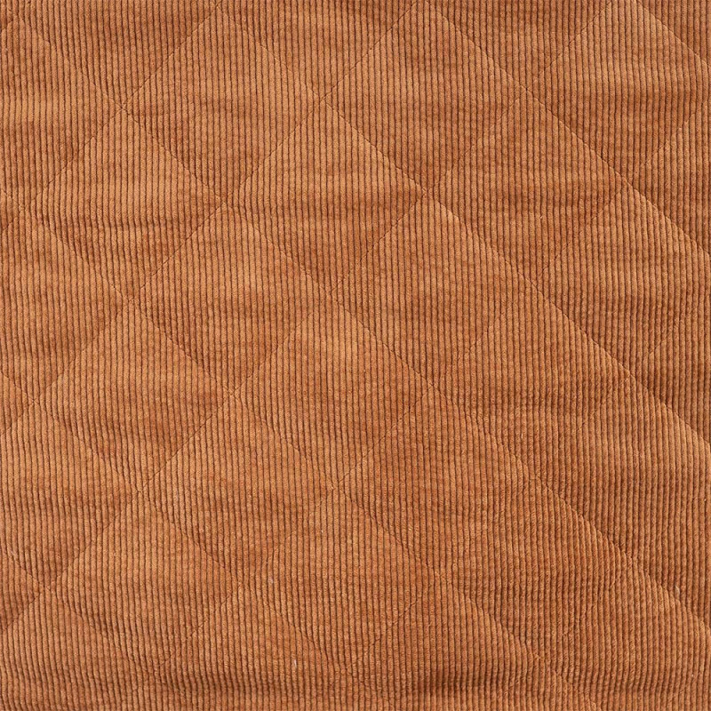 Tissu velours côtelé et fausse fourrure rembourré de ouate camel 145 cm