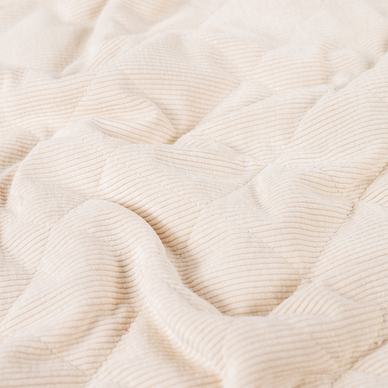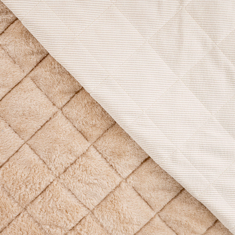 Tissu velours côtelé et fausse fourrure rembourré de ouate beige 145 cm