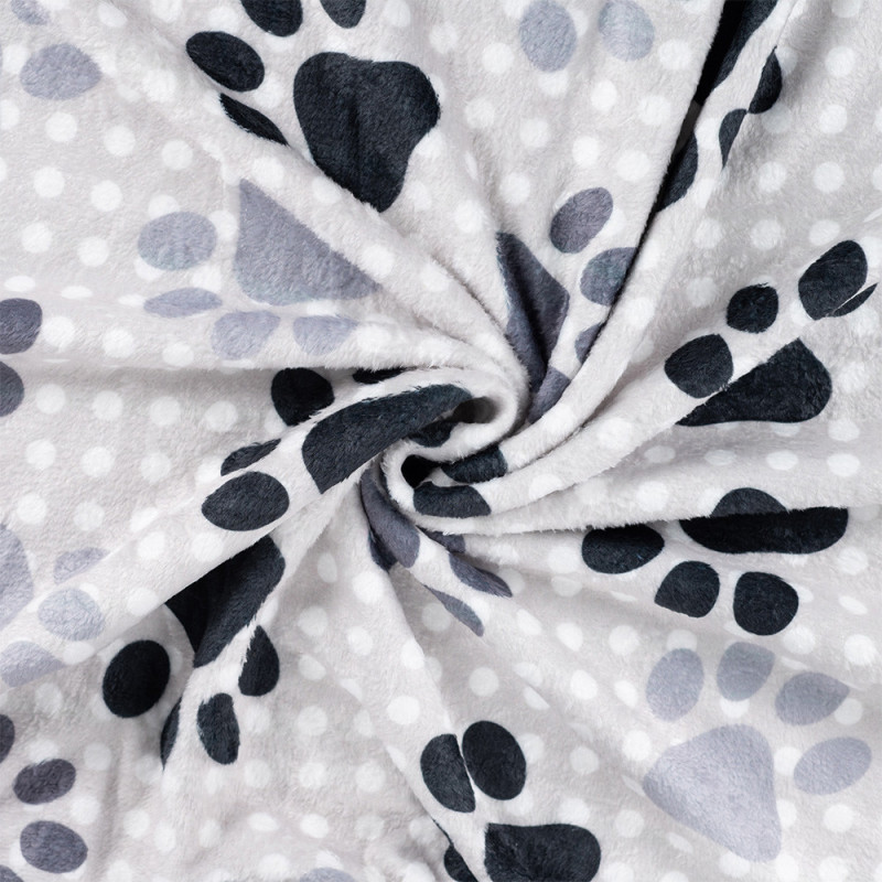 Tissu polaire doudou imprimé patte de chien à pois gris – Largeur 165 cm
