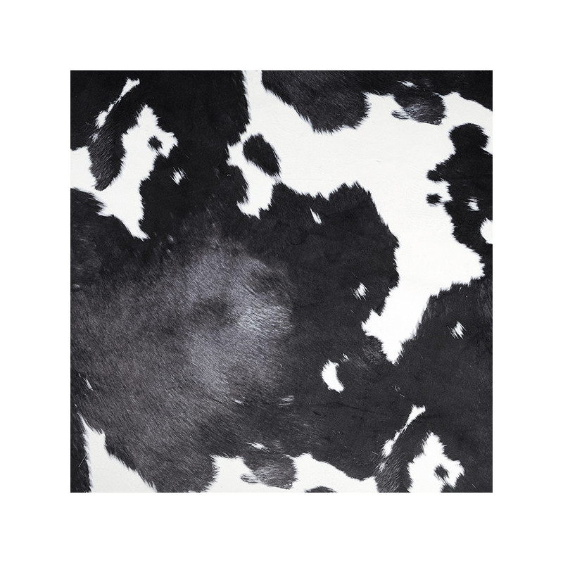 Tissu en fausse fourrure imprimé vache couleur noir et blanc en largeur 150 cm. Soyeuse et douce au toucher, cette imitation fourrure en matière synthétique se prête parfaitement à la création de plaids ou coussins.