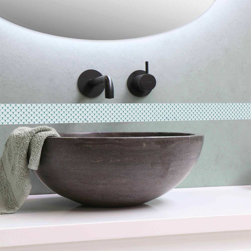 Frise murale adhésive motif évantail blanc et bleu apportera une touche de déco à votre intérieur et de structurer vos pans de murs.