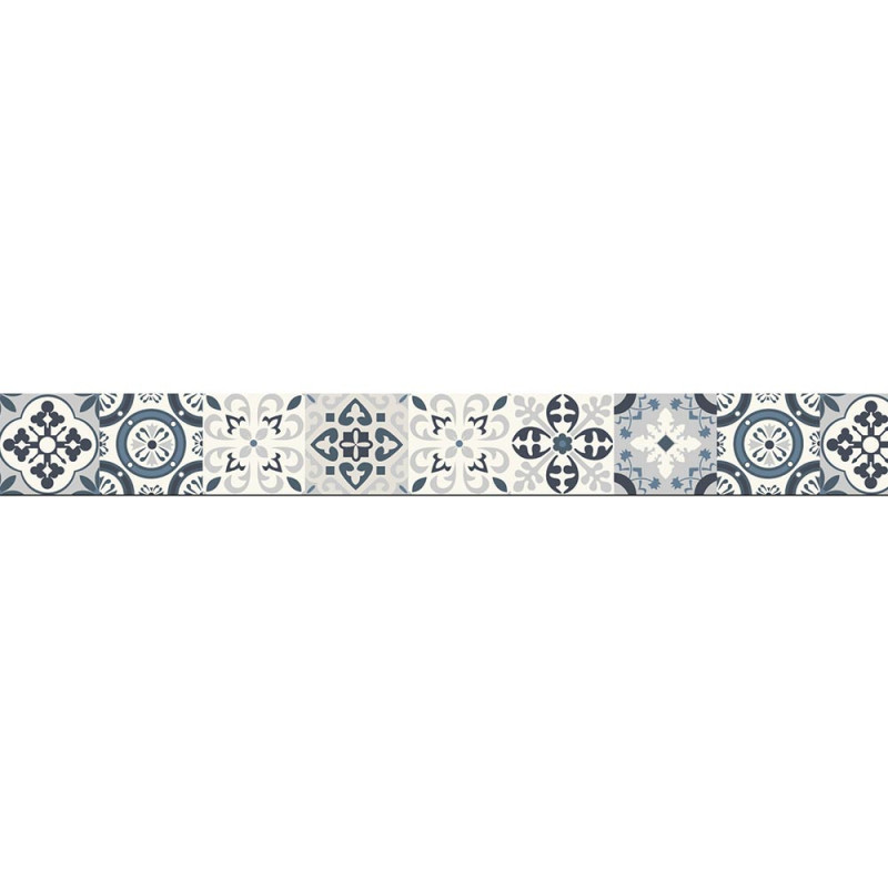 Frise murale adhésive imitation carreaux ciment Borgatella bleu H 5 cm x L 3 ml