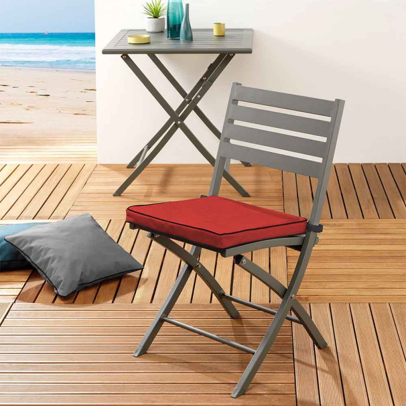 Galette de chaise extérieur à zip rouge 40x40x4 cm