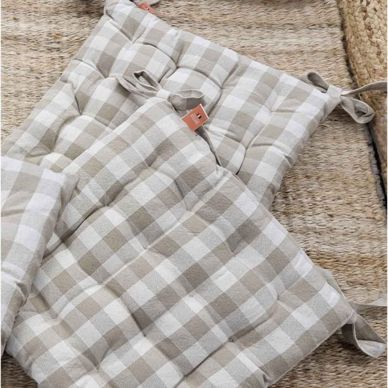 Galette de chaise vichy ficelle 40x40x5 cm