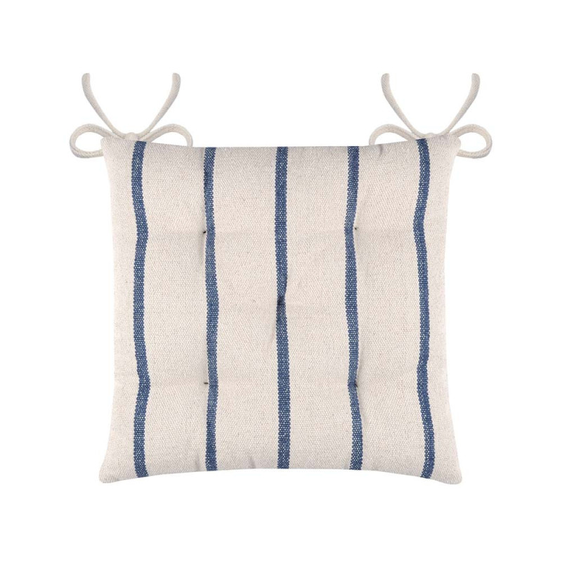 Galette de chaise carrée piquée en 5 points beige rayée bleu marine 40 x 40 cm ep 5,5 cm