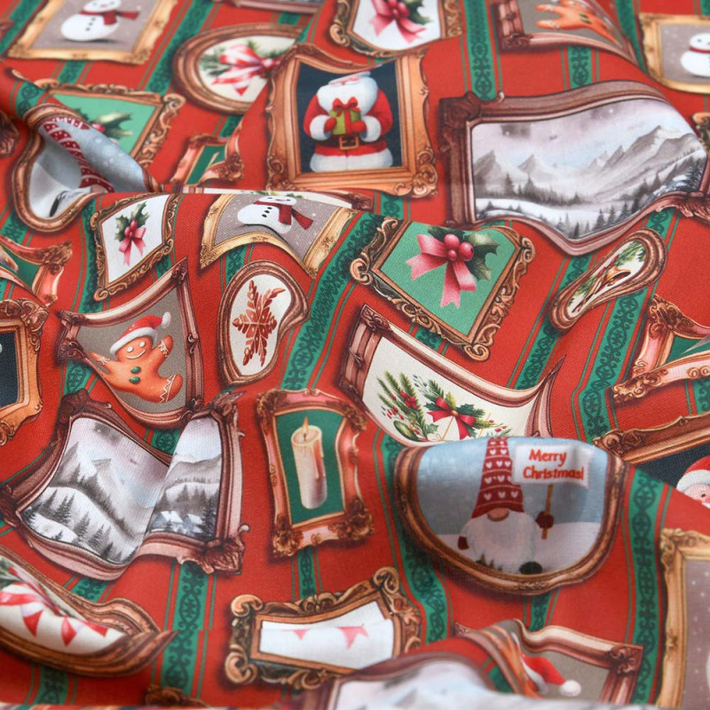 Tissu toile 100 % coton imprimé de Noël rouge, idéal pour vos créations DIY et décorations festives. Sa largeur de 140 cm permet de réaliser facilement des sacs, chemins de table ou accessoires personnalisés. Résistant et agréable au toucher, ce tissu naturel offre une belle tenue pour tous vos projets de couture créative, que ce soit pour des cadeaux faits main ou une ambiance chaleureuse pendant les fêtes.