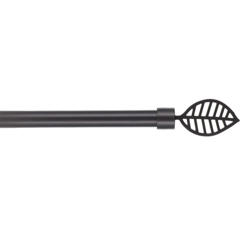 Kit tringle à rideaux extensible gris béton embout feuillage 120 - 210cm Diam 19mm