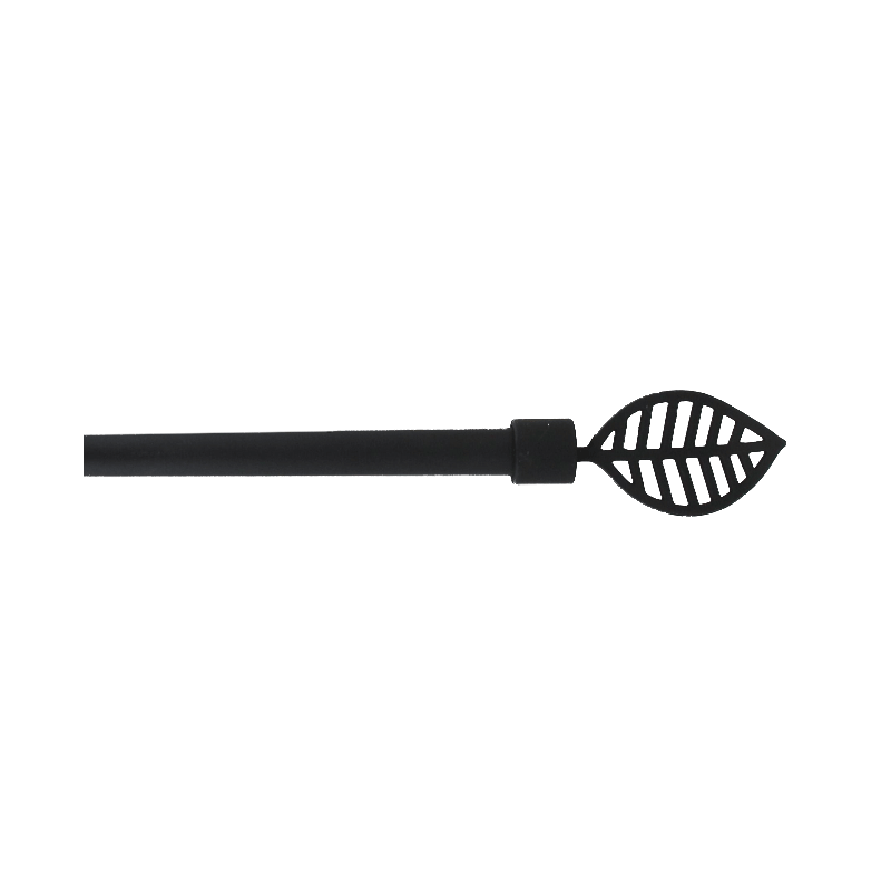 Tringle extensible 120 à 210 cm diamètre 19 mm avec embout en forme de feuille, noir mat, pour un style chic et rétro.
