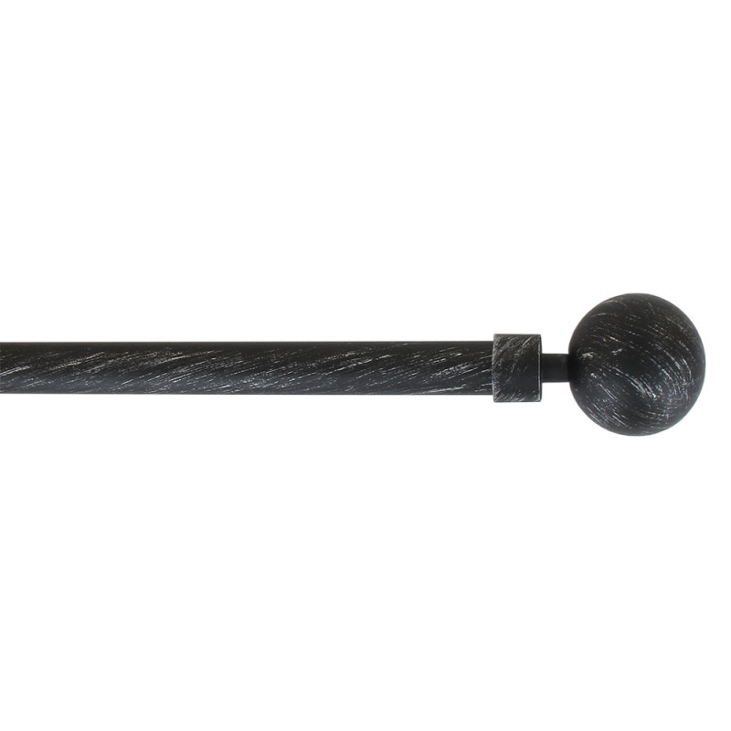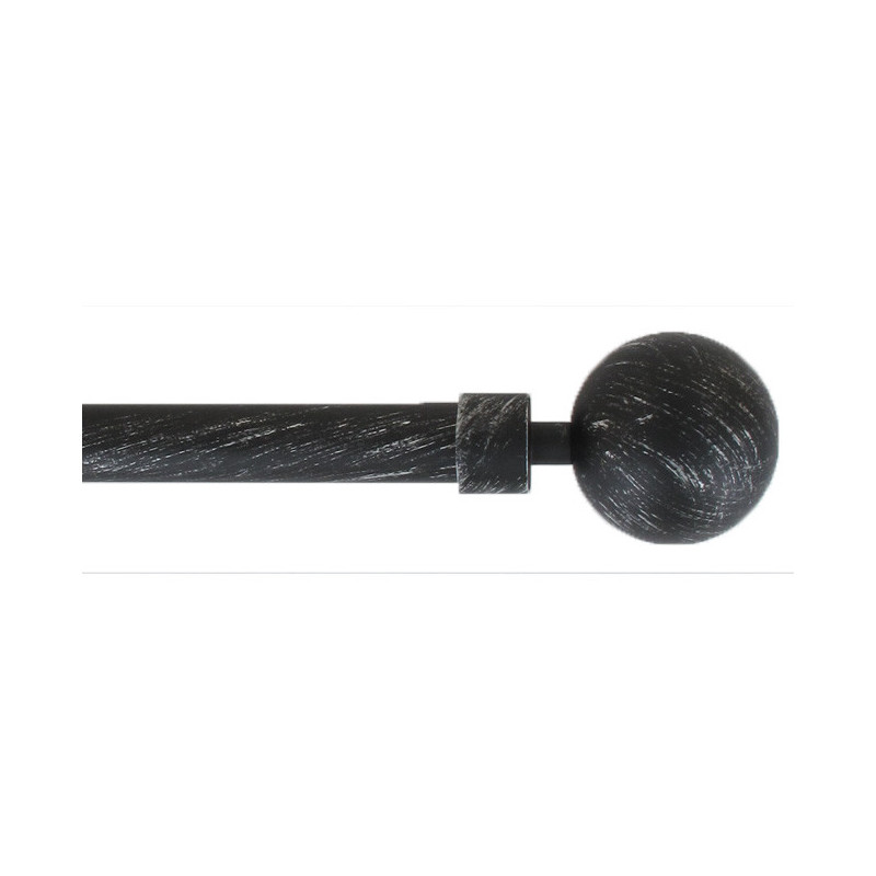 Kit tringle à rideaux extensible embout boule noir argenté 120-210 cm
