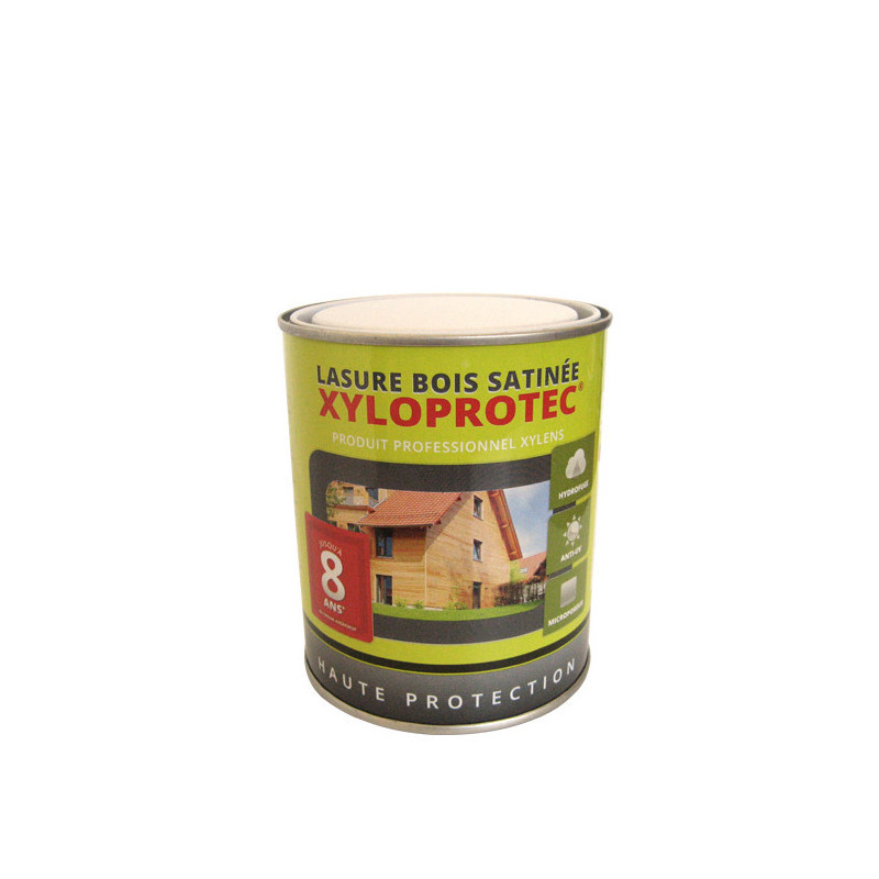 Lasure bois satinée Xyloprotech Haute Protection incolore garantie 8 ans est formulée à base de résine alkydes et de solvant. Microporeuse, fongicide du film et hydrofuge à utiliser sur des supports sains. Cette lasure contient un double système agents anti UV qui offre un écran protecteur renforcé et la rend plus résistante les varirations de températures. Nous vous recommandons d'appliquer 3 couches pour renforcer sa tenue dans le temps.