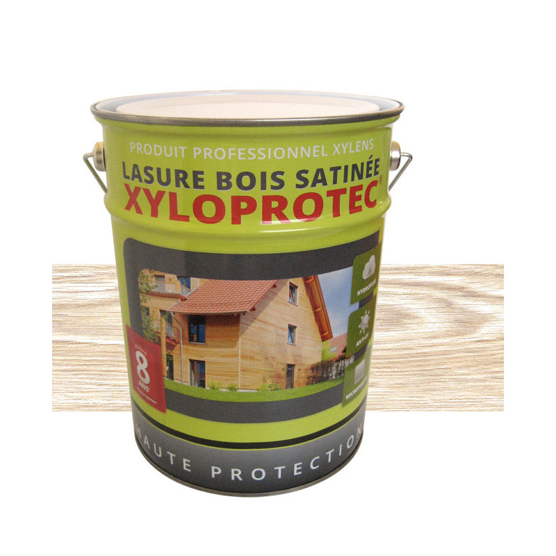 Lasure bois satinée couleur blanc cérusé Xyloprotech garantie 8 ans est formulée à base de résine alkydes et de solvant. Microporeuse, fongicide du film et hydrofuge à utiliser sur des supports sains. Cette lasure contient un double système agents anti UV qui offre un écran protecteur renforcé et la rend plus résistante les varirations de températures. Nous vous recommandons d'appliquer 3 couches pour renforcer sa tenue dans le temps.