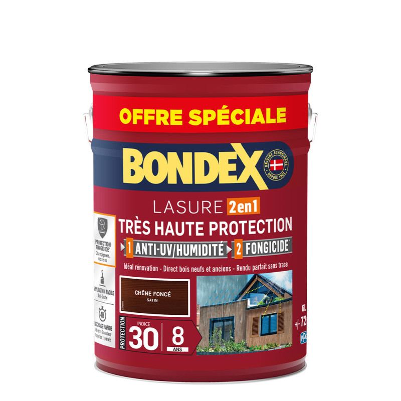 Lasure Bondex 2 en 1 très haute protection garantie 8 ans chêne foncé 6L