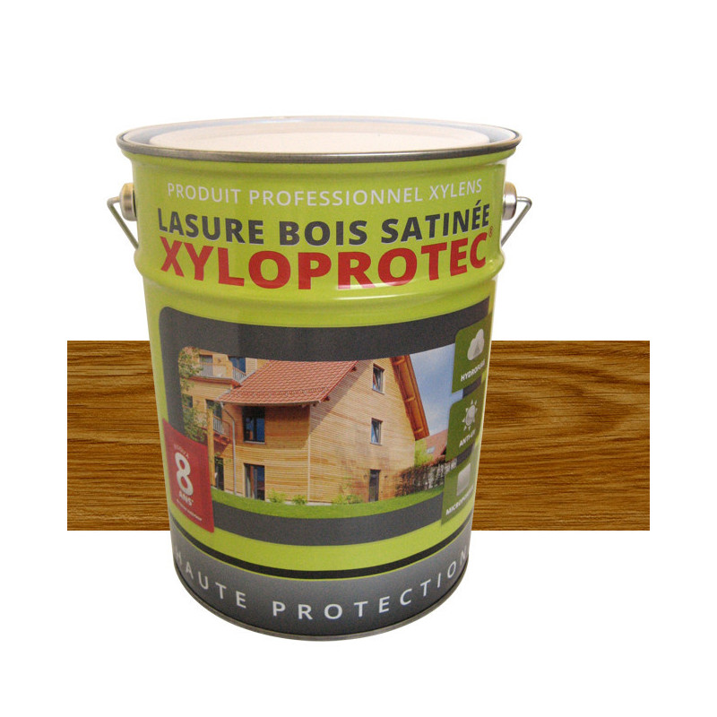Lasure bois satinée couleur chêne moyen Xyloprotech Haute Protection garantie 8 ans est formulée à base de résine alkydes et de solvant....