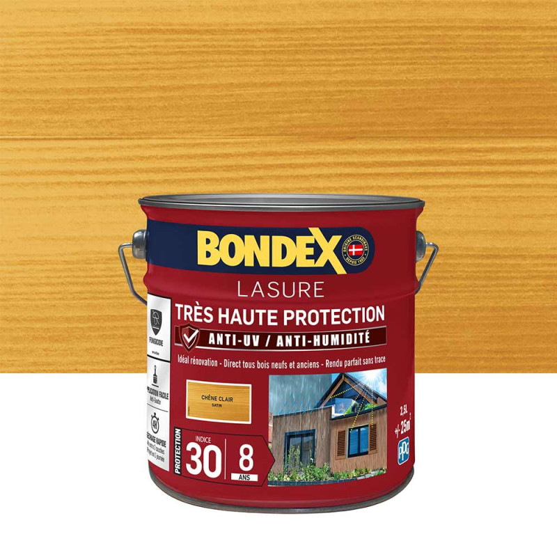 Lasure Bondex 2 en 1 très haute protection garantie 8 ans chêne clair satin 2.5L
