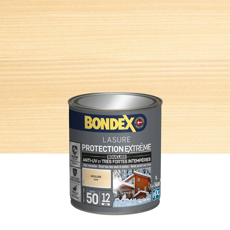Lasure Bondex 2 en 1 protection extrême garantie 12 ans incolore satin 1L