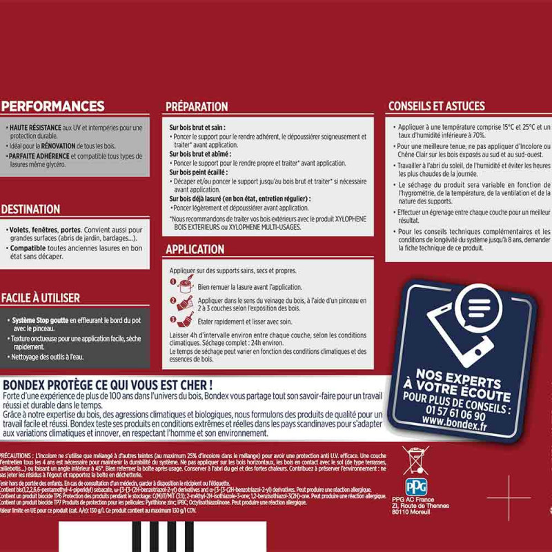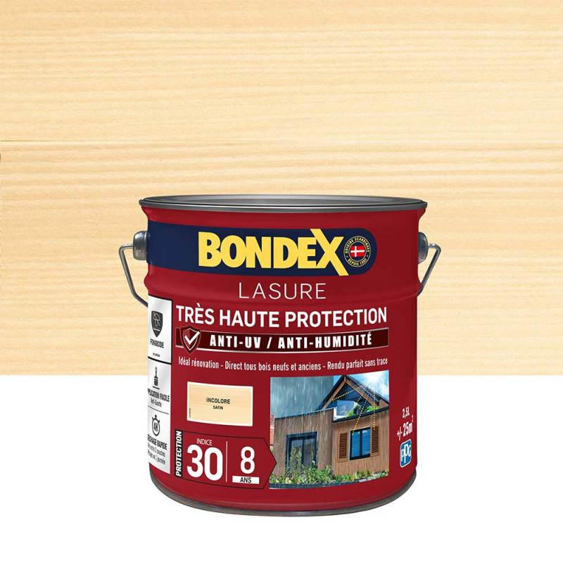 Lasure Bondex 2 en 1 très haute protection garantie 8 ans incolore satin 2.5L