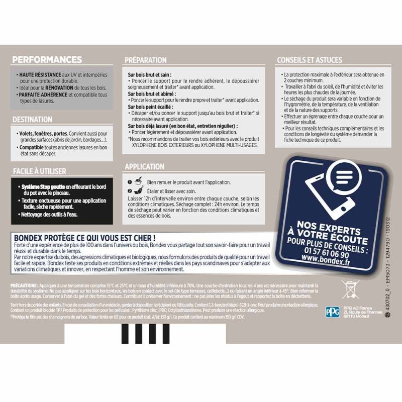 La lasure Bondex 2 en 1opaque très haute protection est garantie 8 ans contre les UV, les intempéries, les écarts de températures les...