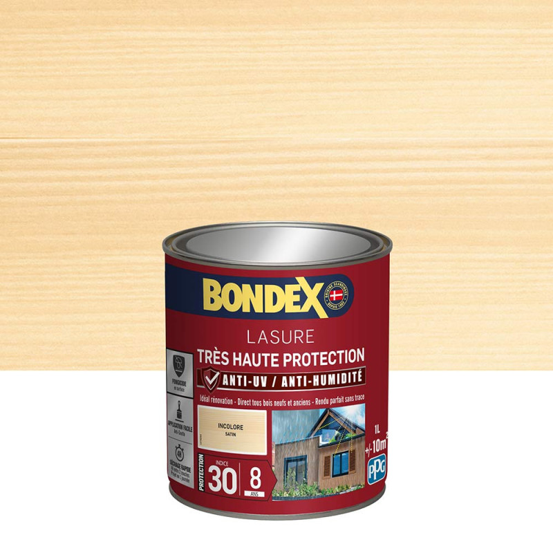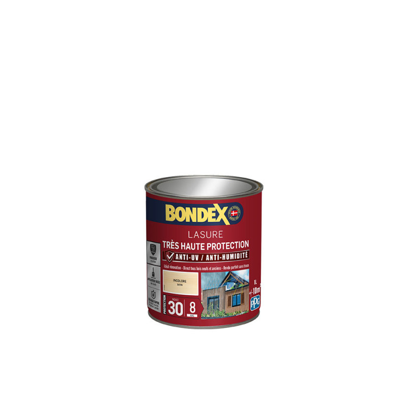 Lasure Bondex 2 en 1 très haute protection garantie 8 ans incolore satin 1L