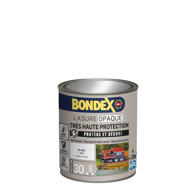 Lasure Bondex 2 en 1 très haute protection garantie 8 ans opaque blanc satin 1L