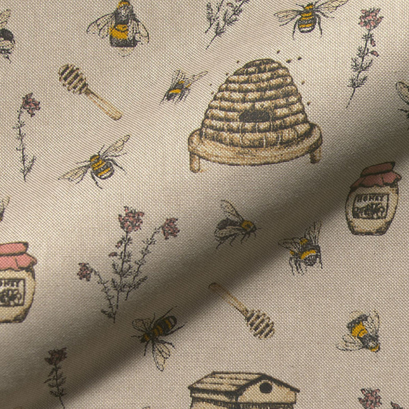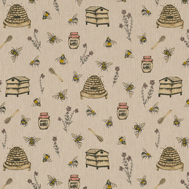 Apportez une touche naturelle et chaleureuse à vos créations avec ce tissu toile effet lin abeille jaune sur fond beige. Son motif délicat d’abeilles jaunes apporte une note champêtre et lumineuse, idéale pour une décoration douce ou des projets de couture inspirés de la nature.