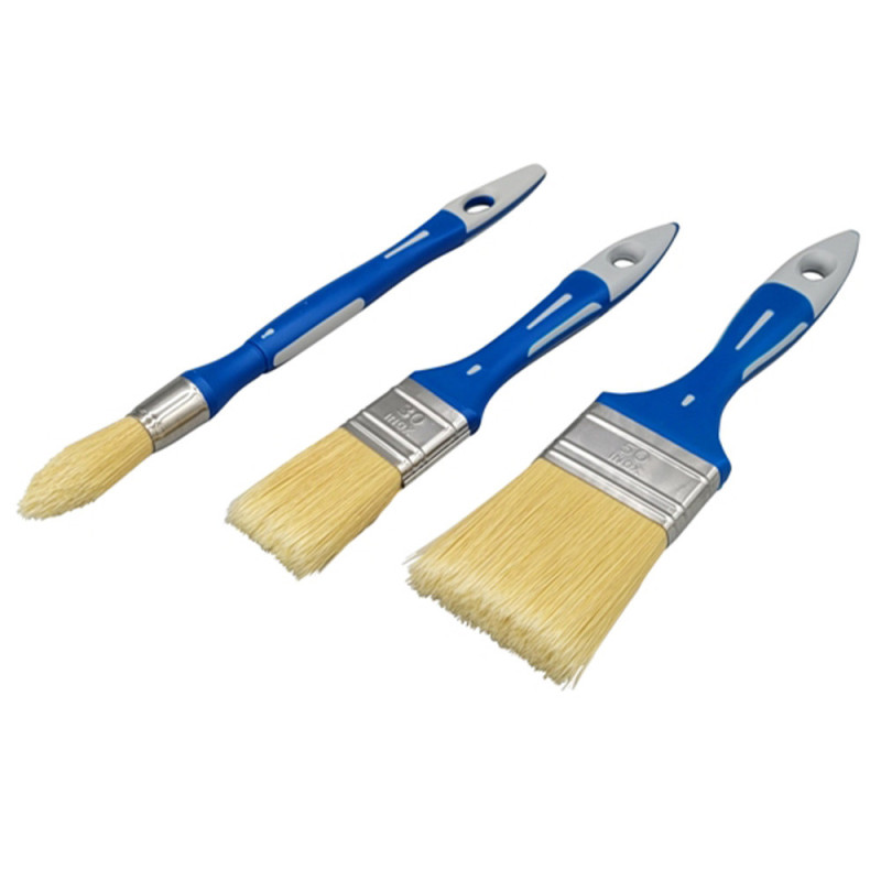 Ce lot de 3 pinceaux est parfait pour l'application de peintures acryliques ou glycéros. Il comprend 2 pinceaux plats pour les surfaces planes (boiseries, portes, murs, plinthes) et 1 pinceau à rechampir pour les travaux de précision et de finition (angles, moulures, bordures). Manche bi-matière ergonomique pour plus de confort, virole inox pour une meilleure durabilité. Ce lot toutes peintures est labellisé origine France, gage de qualité et de fabrication locale.