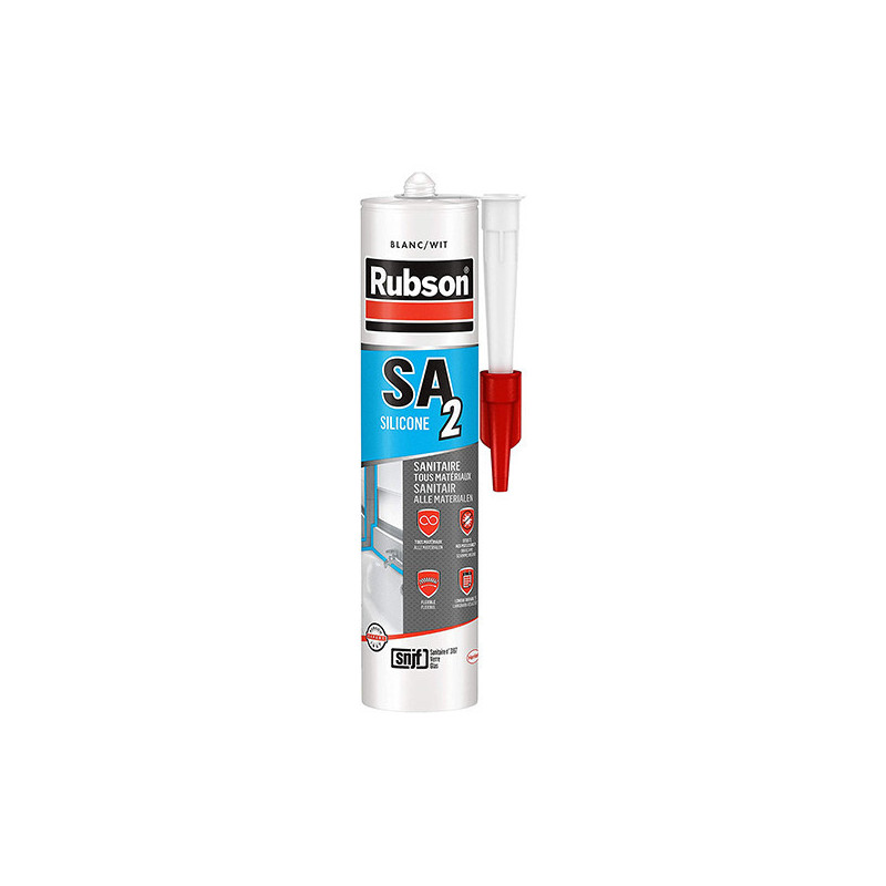 Cartouche silicone RUBSON blanc de 280ml pour réaliser les joints d'étanchéité des sanitaires.