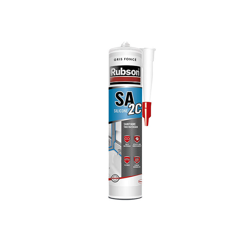 Cartouche silicone RUBSON gris foncé de 280ml pour réaliser les joints d'étanchéité des sanitaires.