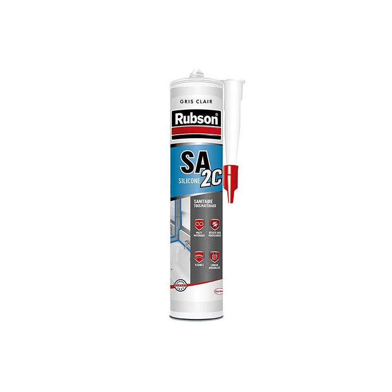 Cartouche silicone RUBSON gris clair de 280ml pour réaliser les joints d'étanchéité des sanitaires.
