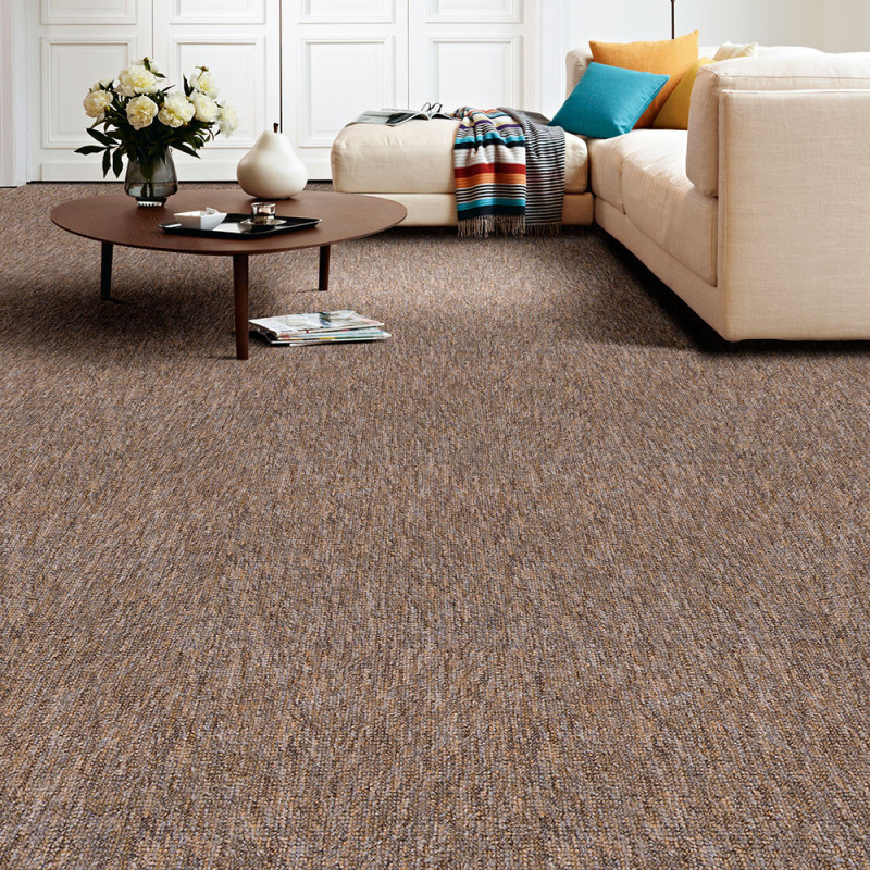 Notre nouveauté, la Moquette bouclée noisette, largeur 4 mètres. Grâce à ses petites boucles serrées, elle offre une excellente résistance au passage en habitation. Sa faible hauteur de velours facilite également son entretien à l’aspirateur.